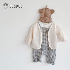 필수 표기정보 품명 및 모델명 와플 가디건 멜빵바지 3종세트 KC 인증 필 유무 어린이제품안전특별법에 따른 KC인증 대상 크기 S,M,L 중량 상품 상세페이지 참조 색상 베이지…
