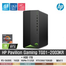 필수 표기정보 품명 및 모델명 HP 파빌리온 게이밍 데스크탑 TG01-2003kr (라이젠5-5600G WIN11 Home 512GB 16GB RTX3060Ti) / HP Pavilion Gaming Desktop ( TG01) KC 인증…