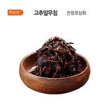 필수 표기정보 제품명 고추잎무침 식품의 유형 상세페이지 참조 생산자 및 소재지 상세페이지 참조 제조연월일, 유통기한 또는 품질유지기한 상세페이지 참조 포장단위별 내용물의 용량(중량), 수량 상세페이지 참조…