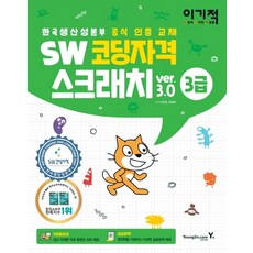 필수 표기정보 도서명 [영진닷컴]이기적 SW코딩자격 3급 스크래치 : 스크래치 3.0 적용 한국생산성본부 공식 인증 교재 저자, 출판사 영진닷컴,이민경최경희 크기(파일의 용량) 220*280mm 쪽수 312쪽 제품 구성…