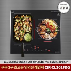 필수 표기정보 품명 및 모델명 공식인증점 CIR-CLT301FS 쿠쿠 3구 인덕션 레인지 / CIR-CLT301FS KC 인증 필 유무 한국화학융합시험연구원(KTR) : JM07016-19014 전자파적합인증번호:R-Rcke-CIR-CLT3010FO 정격전압, 소비전력 220V/60Hz, 3300W,…