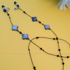 필수 표기정보 종류 마스크줄 겸용 안경줄 소재 검정매듭실,클로버 모양 자개(1.5*1.5),4미리 검정 주판알 스와로브스키 크리스탈,검정 안경고리,붕어장식 치수 약 67cm 제조자(수입자) 트리팟 제조국 대한민국 취급시 주의사항 지퍼백에…