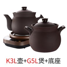 뚝배기 무유약 퍼플샌드 약탕기 약탕주전자 가정용 주전자 전자동 한약 약달이기 전기솥 도자기, T11-K3L포트+G5L냄비+받침대(발송순풍)
