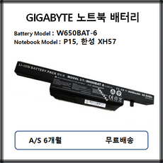 필수 표기정보 품명 및 모델명 품명:W650BAT-6 Gigabyte 노트북 배터리 P15 한성 XH57 호환 / 모델명:W650BAT-6 KC 인증 필 유무 인증유형:구매대행상품 정격전압, 소비전력 정격전압:11.1v / 소비전력:48.84Wh…