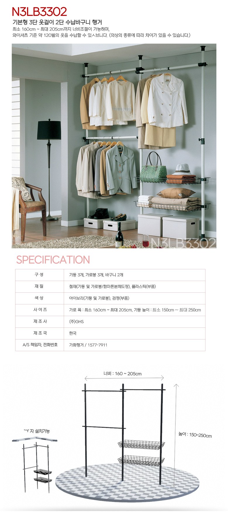 | 품명 | 가화행거 기본형 3단 수납바구니옷걸이행거(N3LB3302) |