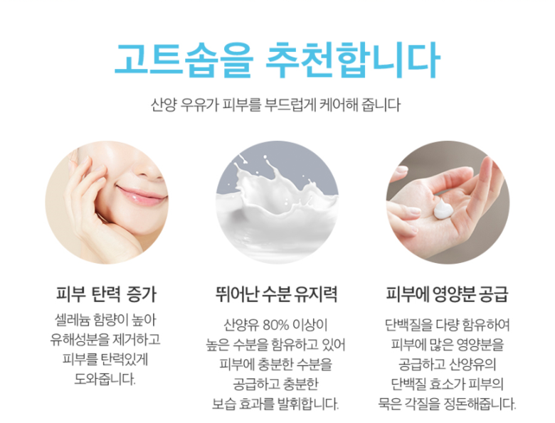 | 화장품법에 따라 기재, 표시하여야 하는 모든 성분 | 6종 : 소듐팔메이트, 소듐코코에이트, 소듐팜커넬레이트, 정제수, 산양유향, 글리세린, 소듐클로라이드, 알몬드오일, 티타늄디옥사이드, 테트라소듐, 코코넛껍질분말 (무석유화학, 무나트륨라 우릴설페이트, 무동물성지방, 무인산염),코코넛오일,마누카허니,라벤더,오트밀,레몬향 / 오리지널6종 : 소듐팔메이트, 소듐코코에이트, 소듐팜커넬레이트, 정제수, 산양유향, 글리세린, 소듐클로라이드, 알몬드오일, 티타늄디옥사이드, 테트라소듐, 코코넛껍질분말 (무석유화학, 무나트륨라 우릴설페이트, 무동물성지방, 무인산염) |