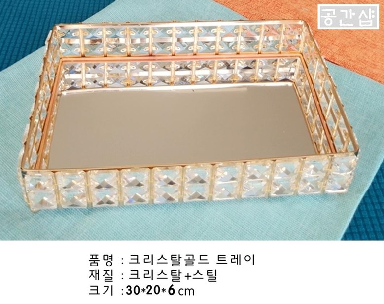 공간샵 예쁜 화장대 꾸미기 크리스탈 골드 화장품정리대 화장대정리함 화장품정리함 화장품트레이 화장품 향수 립스틱 정리 정리함 보관함 정리대 진열대 트레이 네일샵 헤어샵 인테리어 소품, 크리스탈골드 트레이