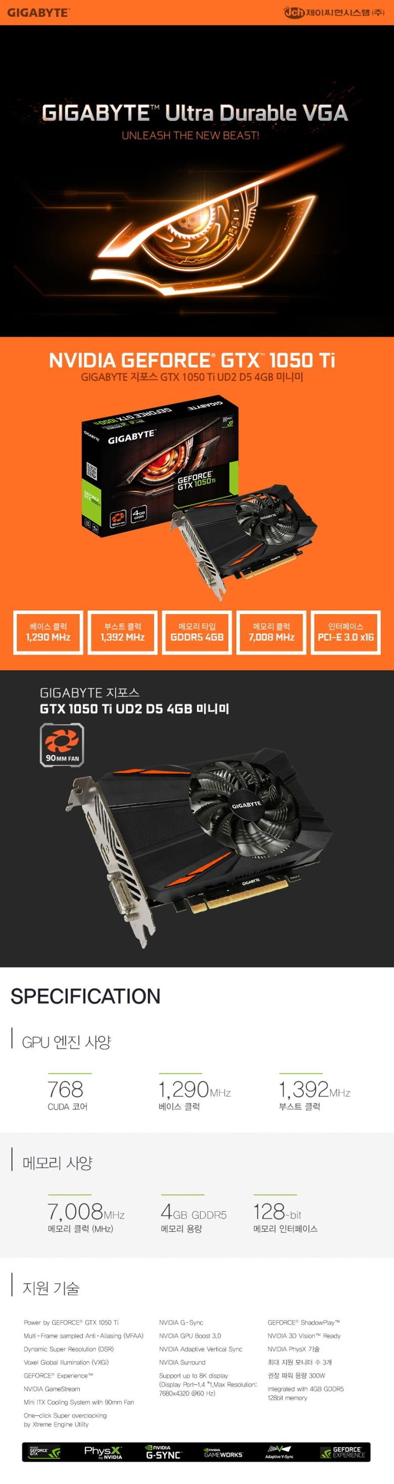 | 품명 및 모델명 | 기가바이트 지포스 GTX1050 Ti UD2 D5 4GB 미니미 |
