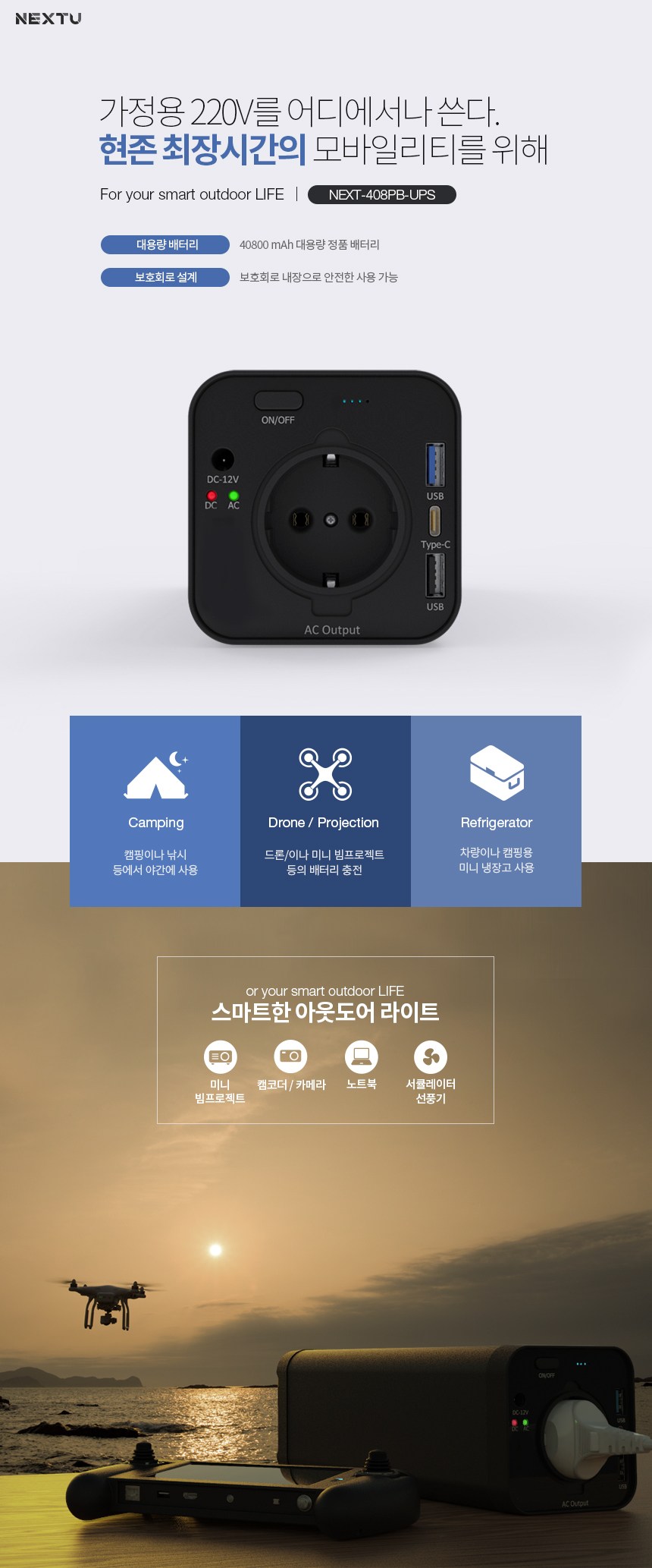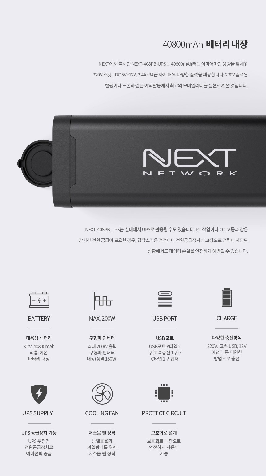| 품명 및 모델명 | 미니UPS+멀티충전기 / NEXT-408PB-UPS |