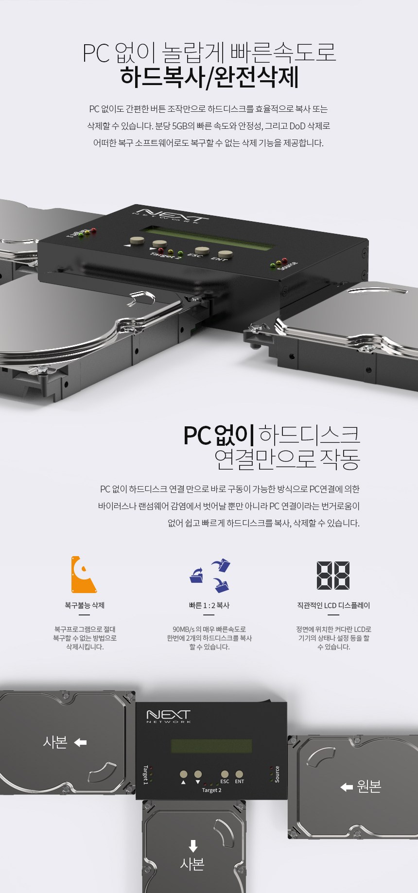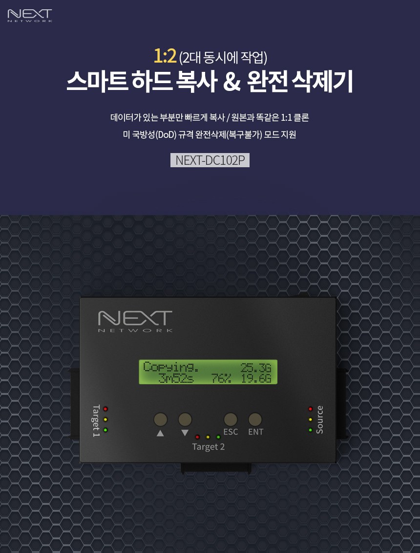 | 품명 및 모델명 | 1:2 HDD/SSD 스마트 복사 삭제 컨버터 / NEXT-DC102P |