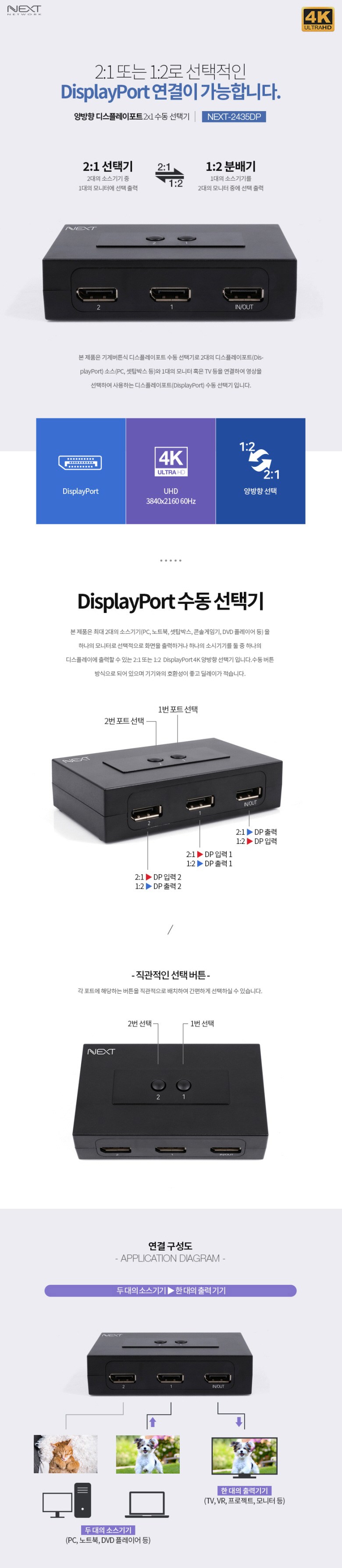 태그: 2대1, DisplayPort, NEXT-2435DP, 넥스트, 선택기,, 수동, 양방향