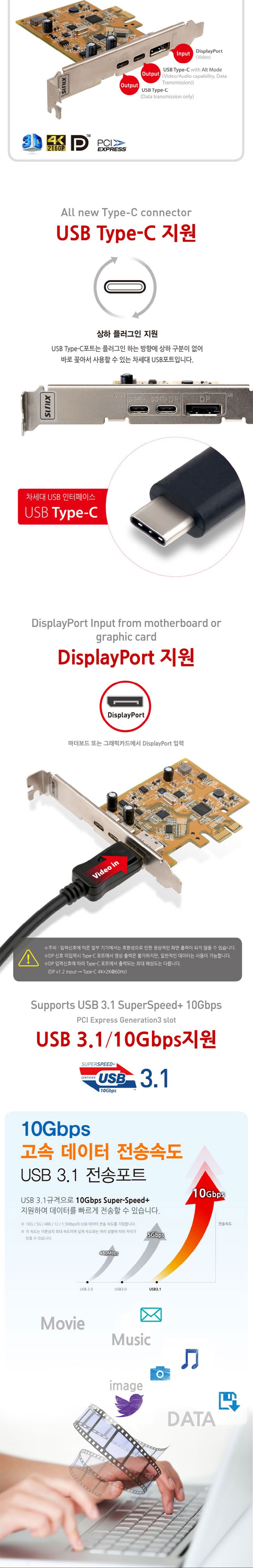 | 주요 사양 | USB3.1 & DisplayPort Alt-Mode PCI-Express Host Card With Dual USB Type-C Socket |