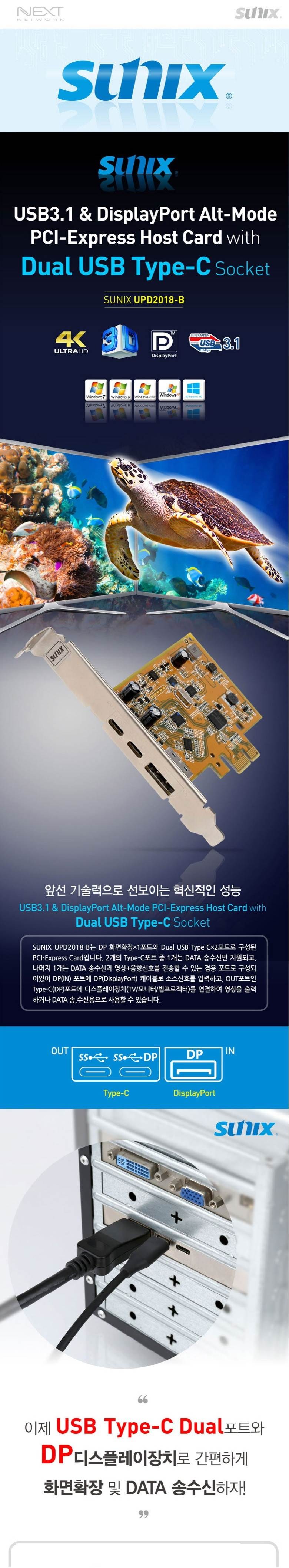 넥스트 USB3.1 & Displat Port Alt Mode PCI Express Host Card with Dual USB Type-C 그래픽 확장카드 SUNIX-UPD2018-B