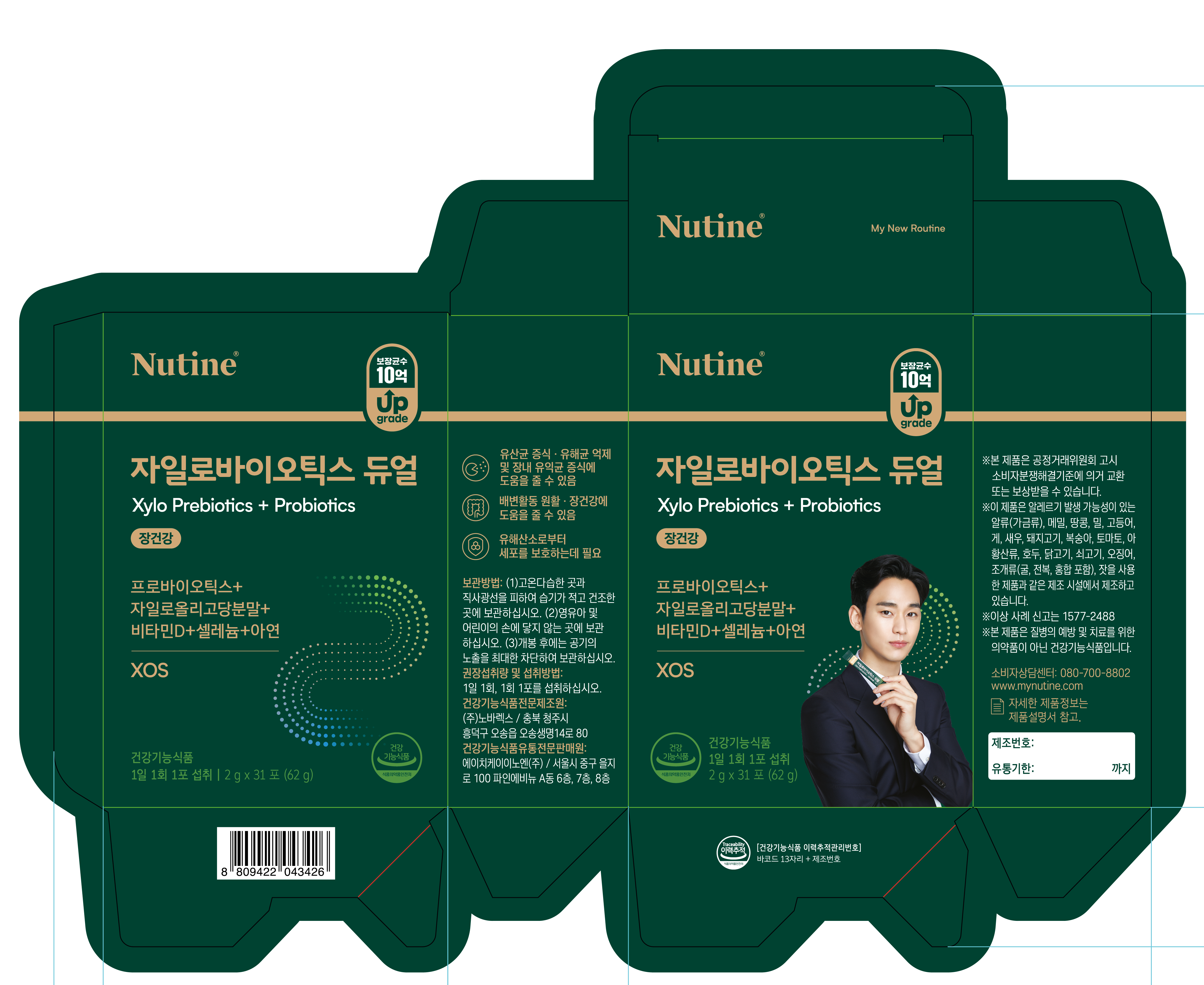 | 기능정보 | [자일로올리고당분말] 장내 유익균 증식, 유해균 억제, 배변활동에 도움을 줄 수 있음[프로바이오틱스] 유산균 증식 및 유해균 억제, 배변활동 원활에 도움을 줄 수 있음[비타민D] 칼슘과 인이 흡수되고 이용되는데 필요, 뼈의 형성과 유지에 필요, 골다공증발생 위험 감소에 도움을 줌[셀레늄] 유해산소로부터 세포를 보호하는데 필요[아연] 정상적인 면역기능에 필요, 정상적인 세포분열에 필요 |