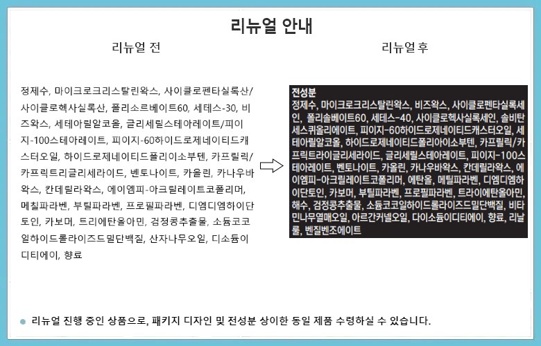 | 화장품법에 따라 기재, 표시하여야 하는 모든 성분 | 컨텐츠 참조 |