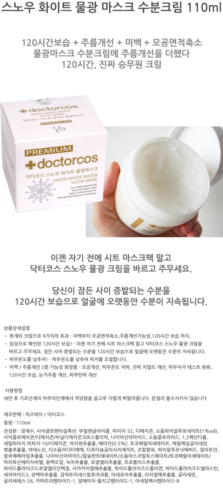 | 화장품제조업자 및 화장품책임판매업자 | 미즈허브 / 닥터코스 |