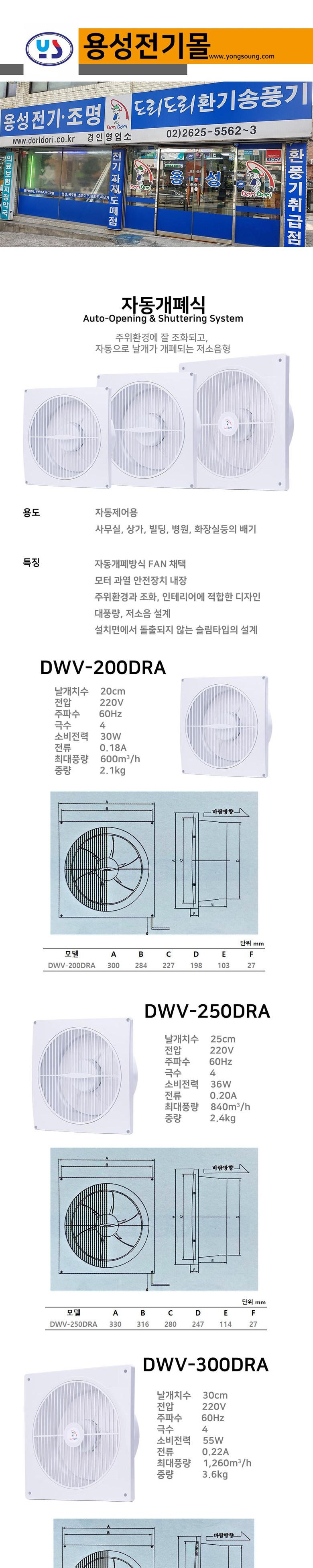 태그: 동우, 자동개페식환풍기DWV-200DRA.(외형300*300m/m, 타공250*250m/m)