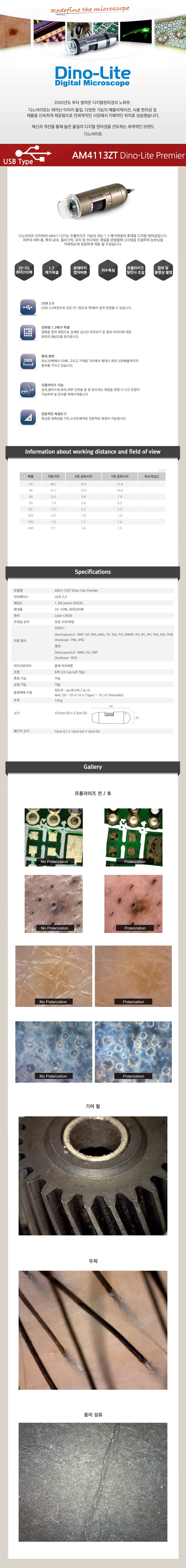 | 품명 및 모델명 | 디노라이트 USB전자현미경 AM4113ZT |