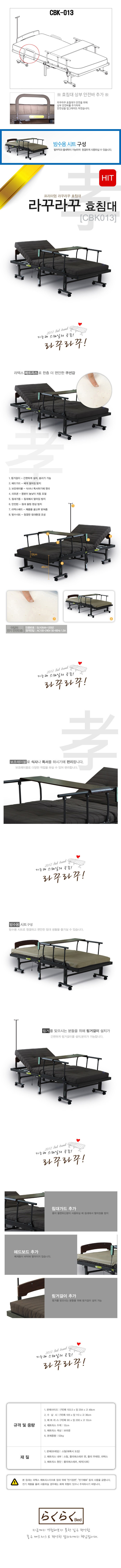 | 구성품 | 효 침대13, 방수시트, 링거걸이, 보조테이블 |