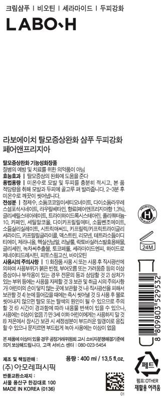 | 사용방법 | 미온수로 모발 및 두피를 충분히 적시고 본품 적당량을 취해 모발과 두피에 골고루 펴 발라줍니다. 2~3분 후 미온수로 깨끗이 씻어냅니다. |
