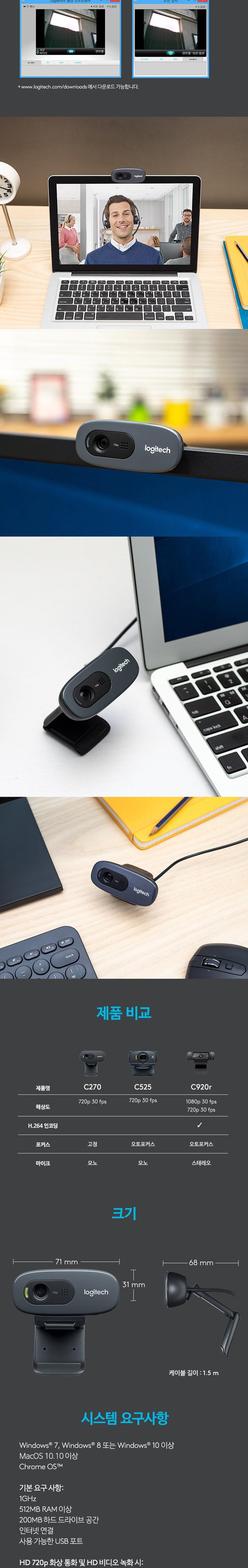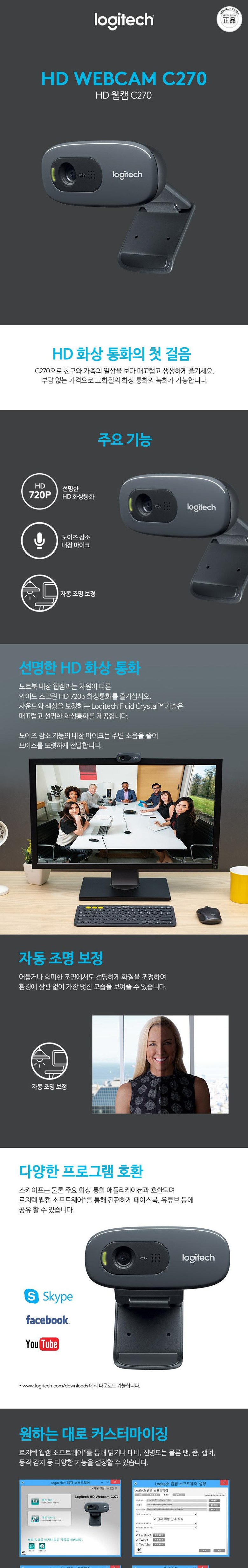 필수 표기정보 품명 및 모델명 로지텍 C270 KC 인증 필 유무 상품 상세페이지 참조 정격전압, 소비전력 상품 상세페이지 참조 에너지소비효율등급 상품 상세페이지 참조 출시년월 상품…