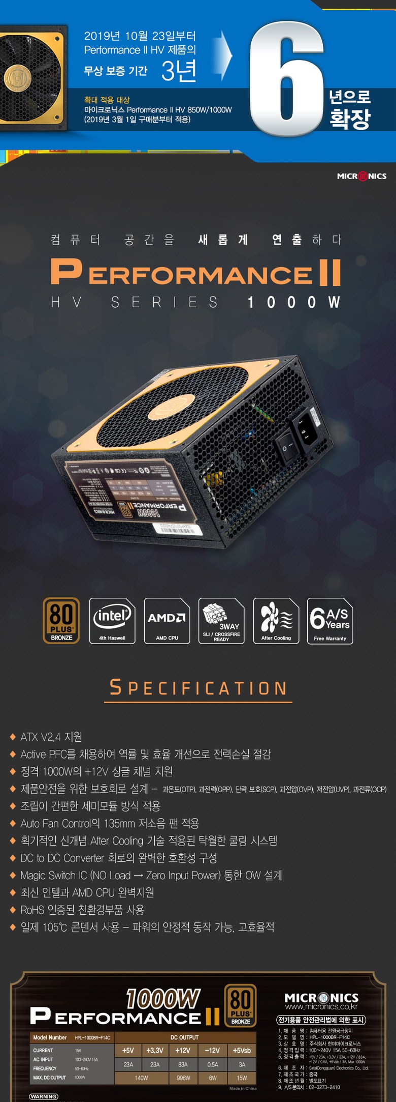 태그: 1000W, ATX, BRONZE, HPL-1000BR-F14C, HV, II, PERFORMANCE, 마이크로닉스