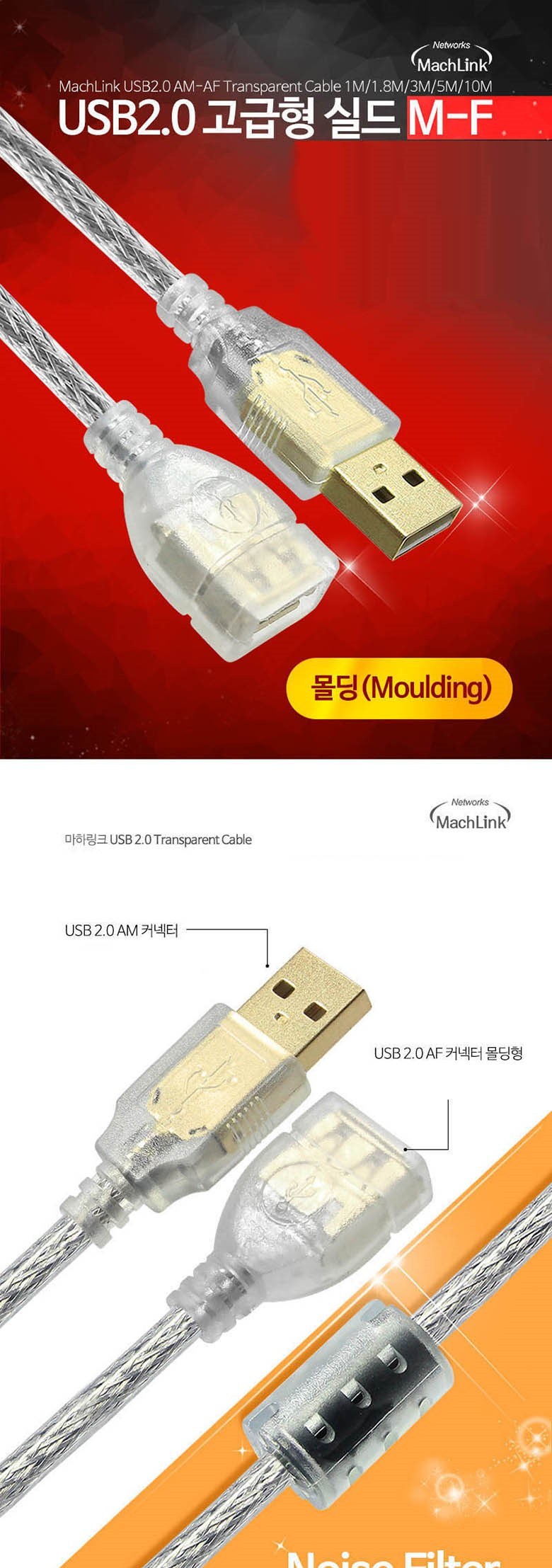 | 품명 및 모델명 | 마하링크 USB2.0 M/F 실드 연장케이블 10M ML-U2HF100 |
