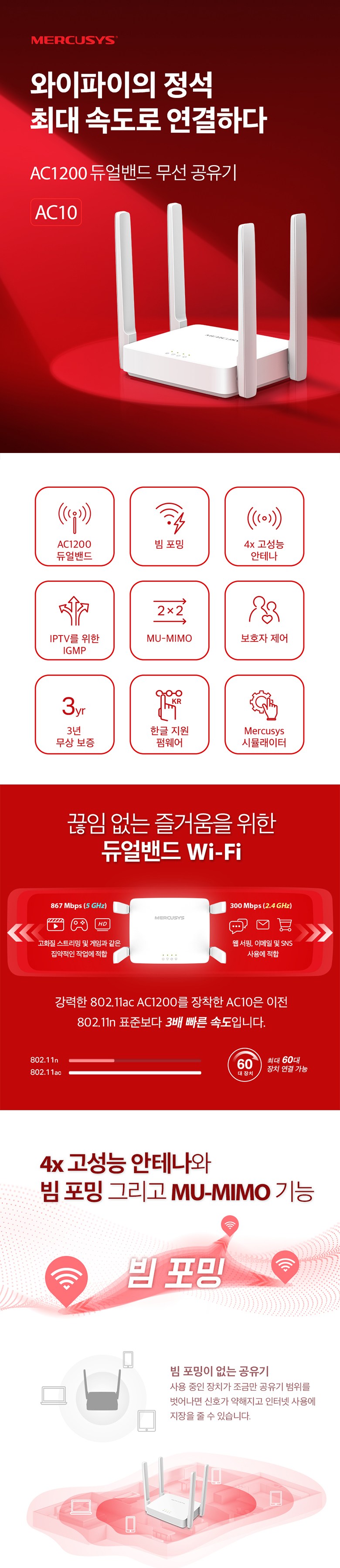 | 품명 및 모델명 | Mercusys AC1200 무선 듀얼 밴드 공유기 AC10 |