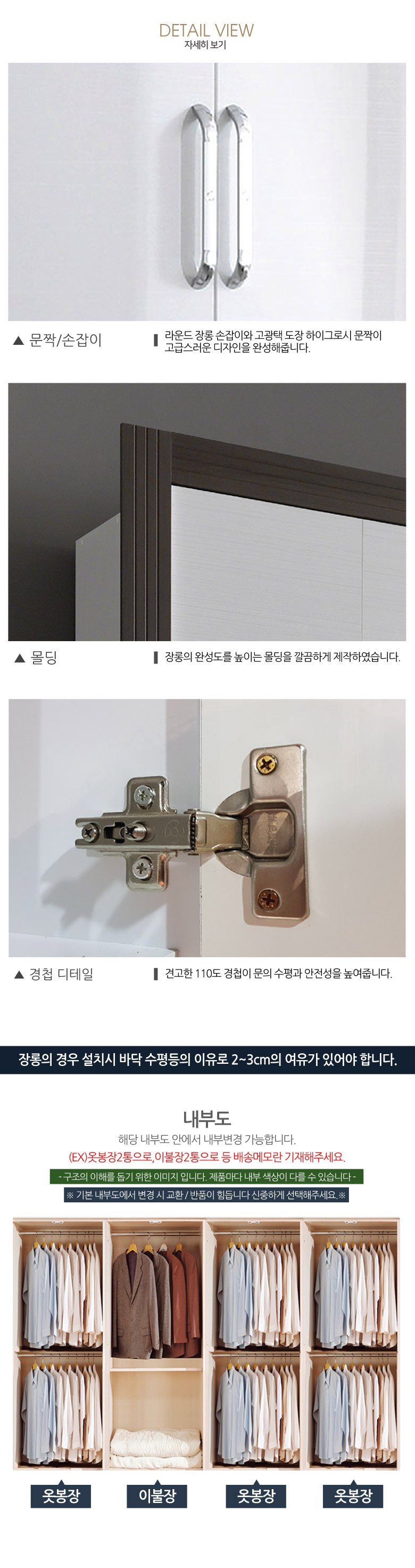 필수 표기정보 품명 칸트 800 긴문장+400 거울반장 세트 KC 인증 필 유무 유 색상 화이트, 그레이, 오크, 워시 구성품 400 거울반장 (옷장) 1개 800 긴문장…