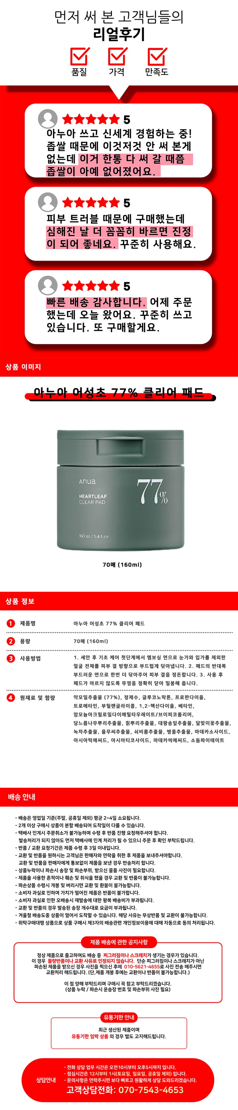 | 화장품법에 따라 기재, 표시하여야 하는 모든 성분 | 상품 상세페이지 참조 |