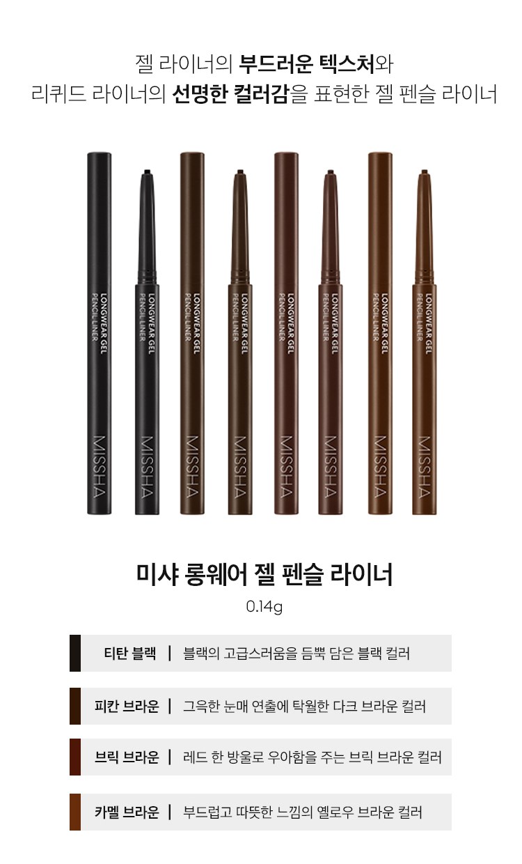 | 사용방법 | 1) 내용물을 1mm 가량 돌려 빼내줍니다. 2) 속눈썹 라인을 따라 부드럽게 그려줍니다. ※ tip: 젤 펜슬 타입으로 완벽하게 밀착되기까지 5초만 기다려주세요. |