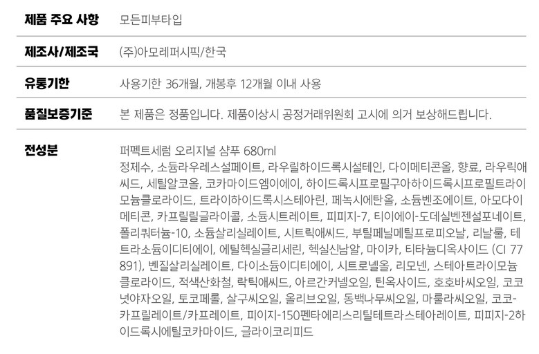 | 화장품법에 따라 기재, 표시하여야 하는 모든 성분 | 상품 상세페이지 참조 |
