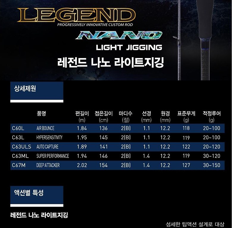 | 품명 및 모델명 | 바낙스 레전드 나노 라이트지깅 바다루어대 C63ML |