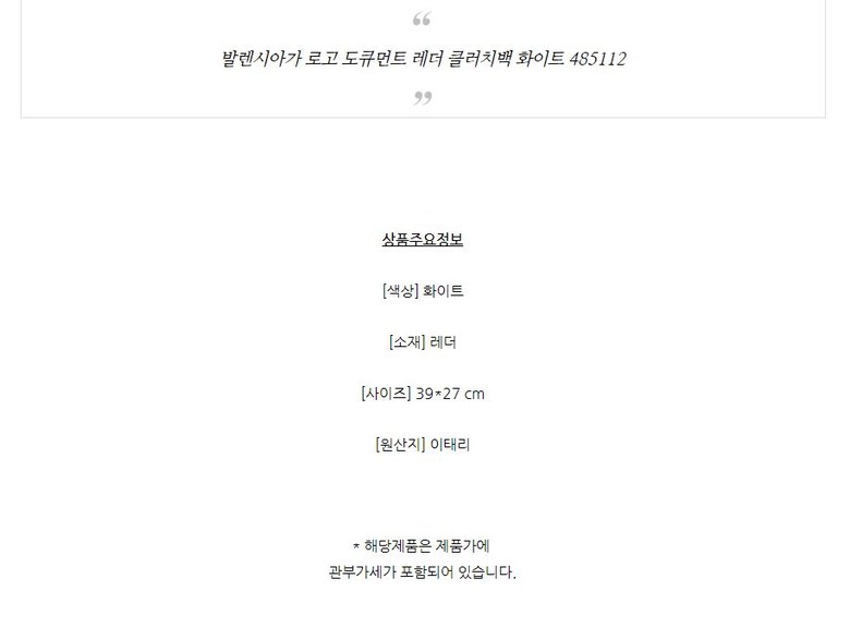 필수 표기정보 종류 클러치백 소재 소가죽 100% 색상 블랙 크기 사이즈 : 39cm x 28cm(가로x세로) 제조자(수입자) 톰브라운 제조국 이탈리아 취급시 주의사항 온도와 습기, 마찰에 의해…