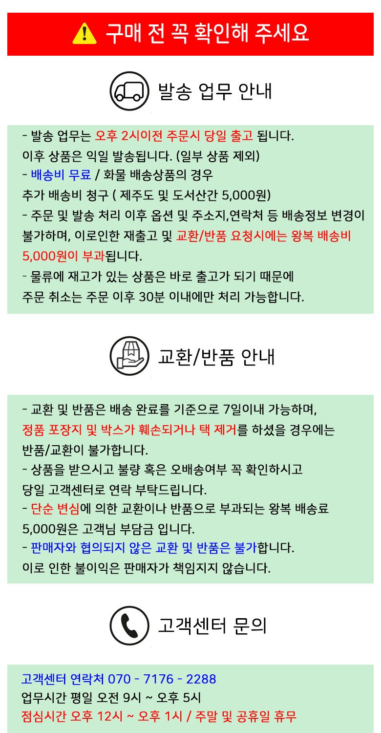 필수 표기정보 품명 및 모델명 상품 상세페이지 참조 인증/허가 사항 상품 상세페이지 참조 제조국(원산지) 상품 상세페이지 참조 제조자(수입자) 상품 상세페이지 참조 소비자상담 관련 전화번호 상품…