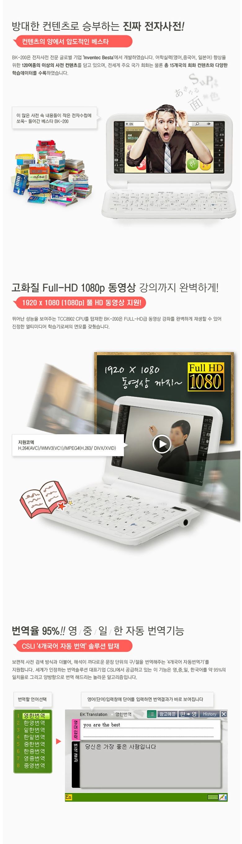 | 주요 사양 | 4개국 번역기/15개국 회화사전/ 120여종 이상의 사전 컨텐츠수록/ 필기인식/발음비교 |