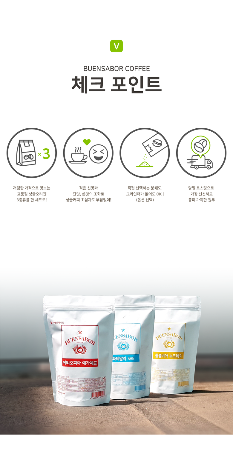 | 원재료명 및 함량 | 에티오피아 예가체프-에티오피아 100% / 탄자니아AA-탄지니아 100% / 콜롬비아 수프레모-콜롬비아 100% |