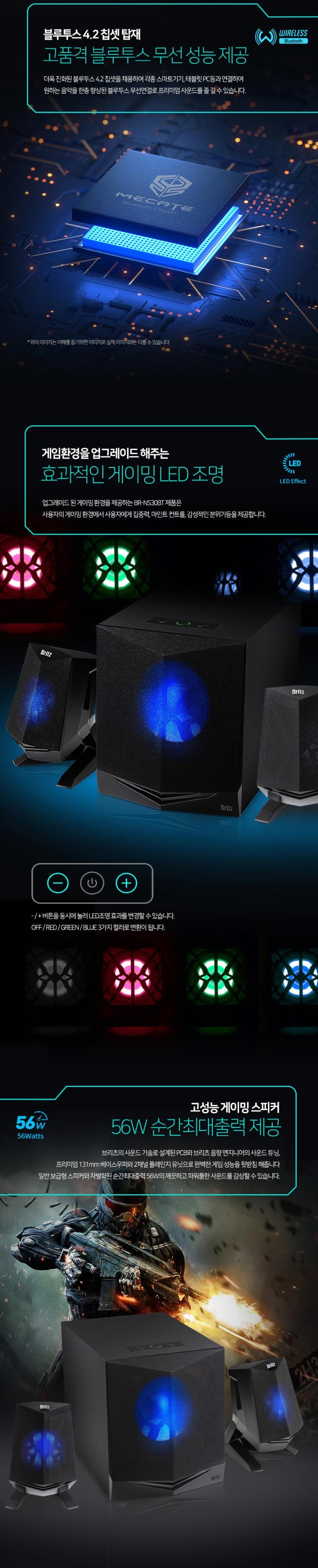 필수 표기정보 품명 및 모델명 브리츠 2채널 블루투스 PC용 스피커 BZ-SL7 bluetooth KC 인증 필 유무 R-R-BZI-BZSL7Bluetooth 정격전압, 소비전력 USB DC5V , 5W 에너지소비효율등급 해당없음…
