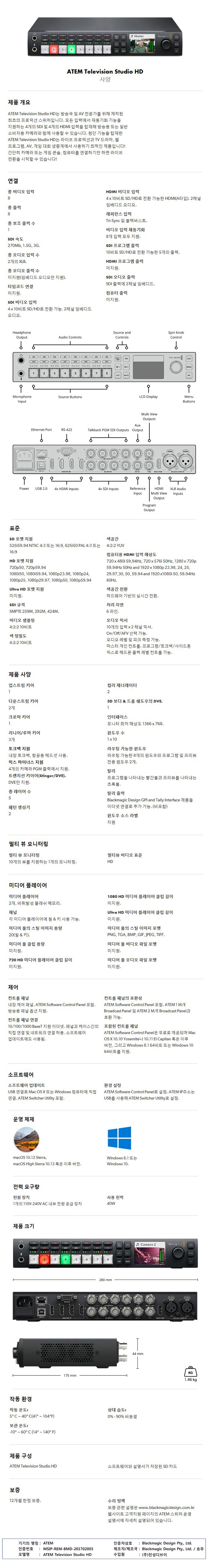 | 품명 및 모델명 | Blackmagic ATEM Television Studio HD |