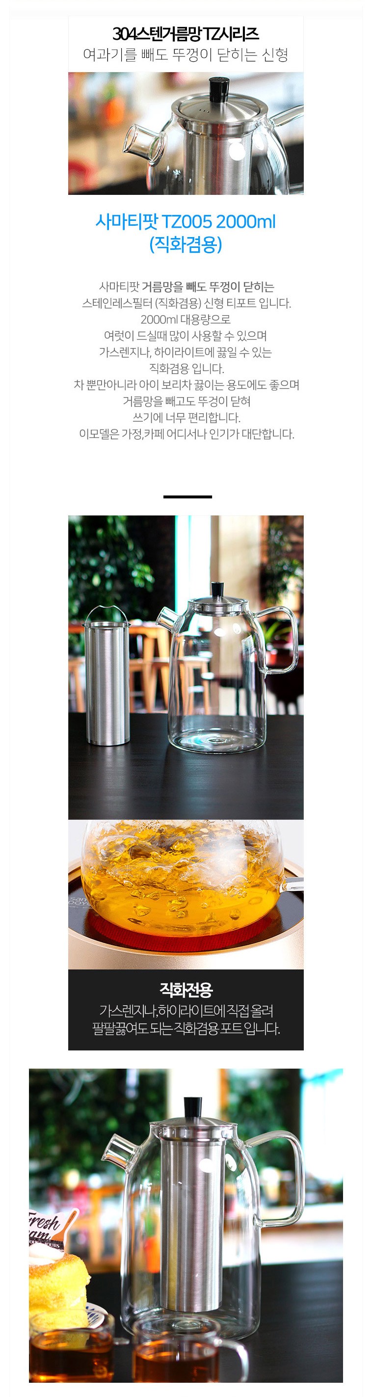 | 품명 및 모델명 | 사마글라스 직화 내열유리 티포트 TZ005 2000ml 대용량 |
