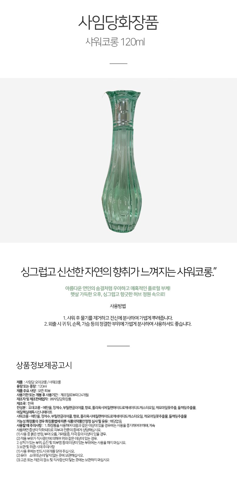 | 화장품법에 따라 기재, 표시하여야 하는 모든 성분 | 상품 상세페이지 참조 |