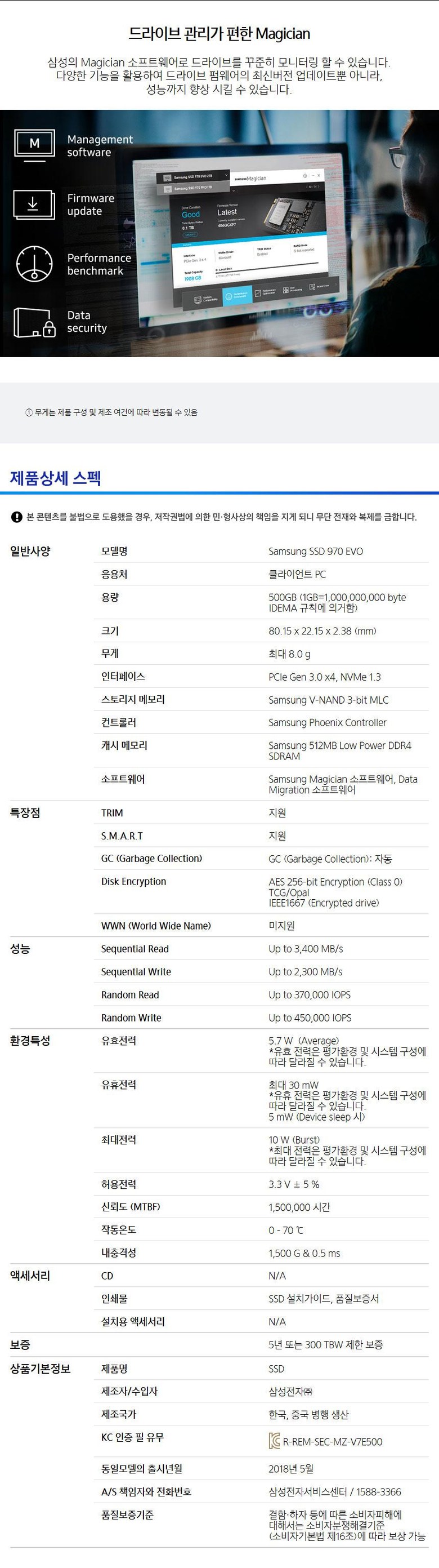 | 인증/허가 사항 | R-REM-SEC-MZ-V7E500 |
