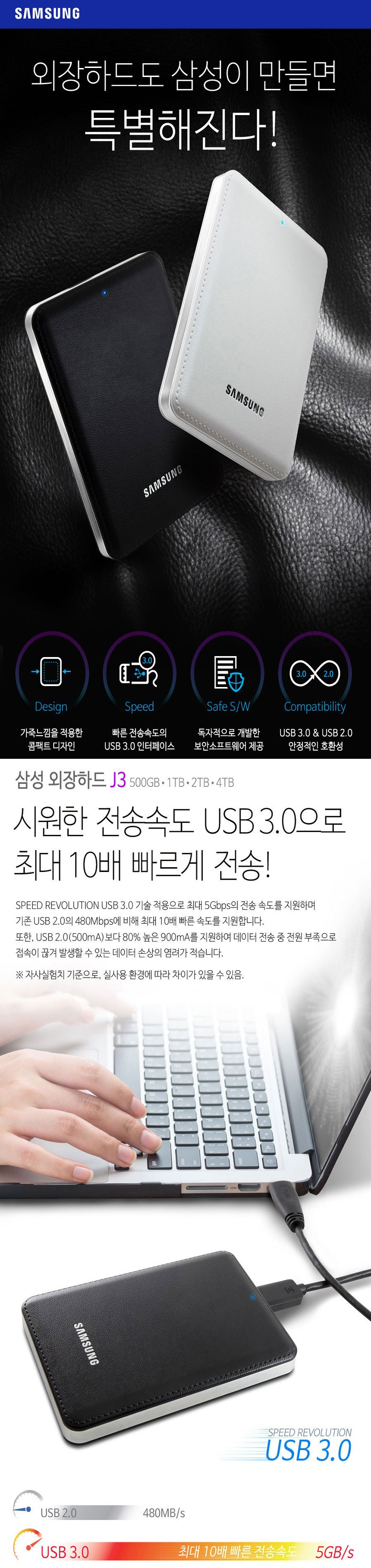 | 주요 사양 | 빠른 전송속도의 USB 3.0 인터페이스, USB 3.0 & USB 2.0 안정적인 호환성 |