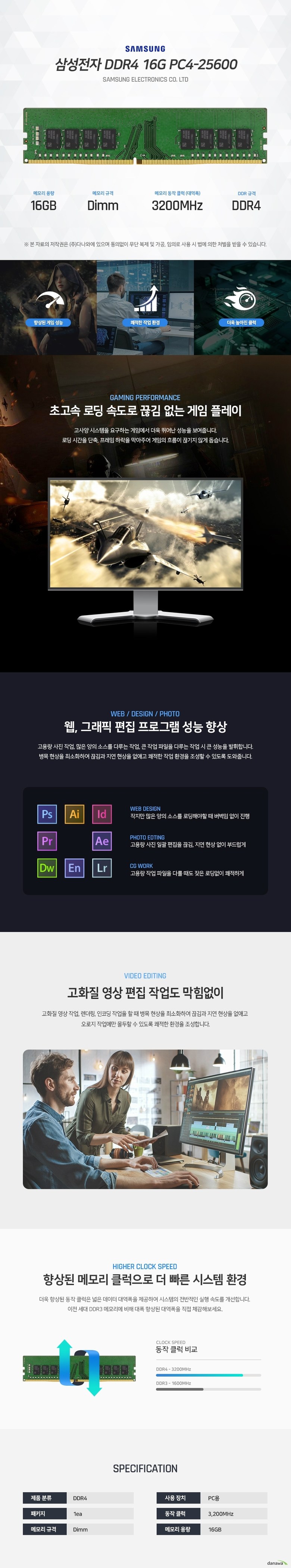 태그: 16GB, DDR4, PC4-3200AA/3200MHz/데스크탑메모리, 삼성