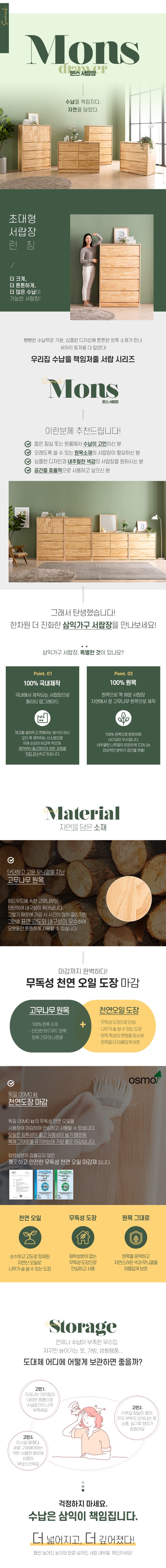 필수 표기정보 품명 몬스 원목 5단 수납 서랍장 KC 인증 필 유무 유/KC마크 색상 내추럴 구성품 5단 서랍장 1EA 주요 소재 컨텐츠 참조 제조자(수입자) 삼익가구OEM…