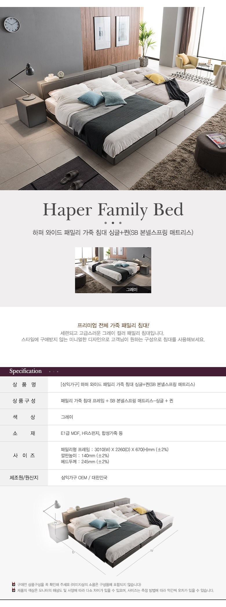 | 품명 | 삼익가구 하퍼 와이드 패밀리 가죽 침대_그레이_방문설치 |