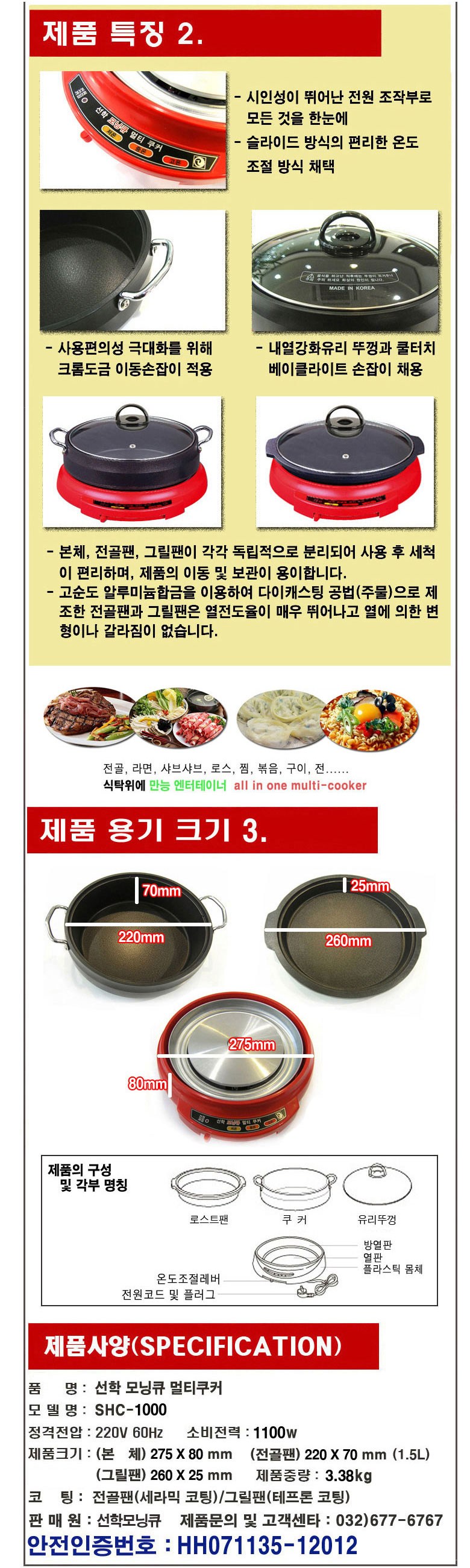 | 품명 및 모델명 | 선학 모닝큐 멀티쿠커 SHC-1000 |