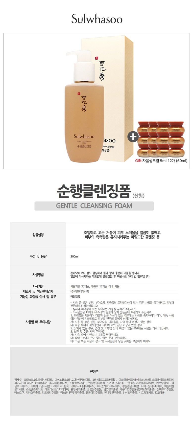 필수 표기정보 용량(중량) 자음수125ml,자음유액125ml,설화수탄력크림45ml,윤조에센스15ml,자음생수15ml,자음생유액15ml,순행클렌징폼50ml,윤조마스크1매 제품 주요 사양 상세 페이지 참고 사용기한 또는 개봉 후 사용기간 상세 페이지 참고 사용방법 아침, 저녁 세안 후 손바닥에 2~3회…