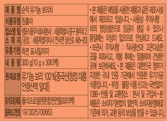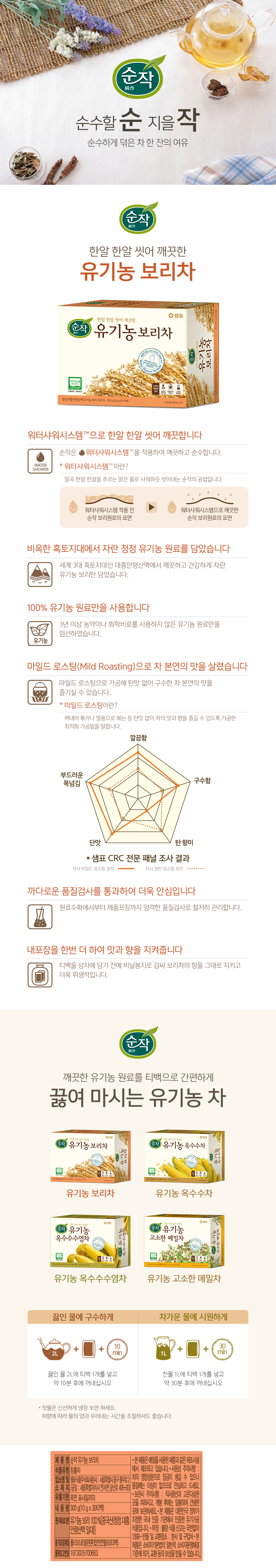 | 제품명 | 순작 유기농 보리차 |