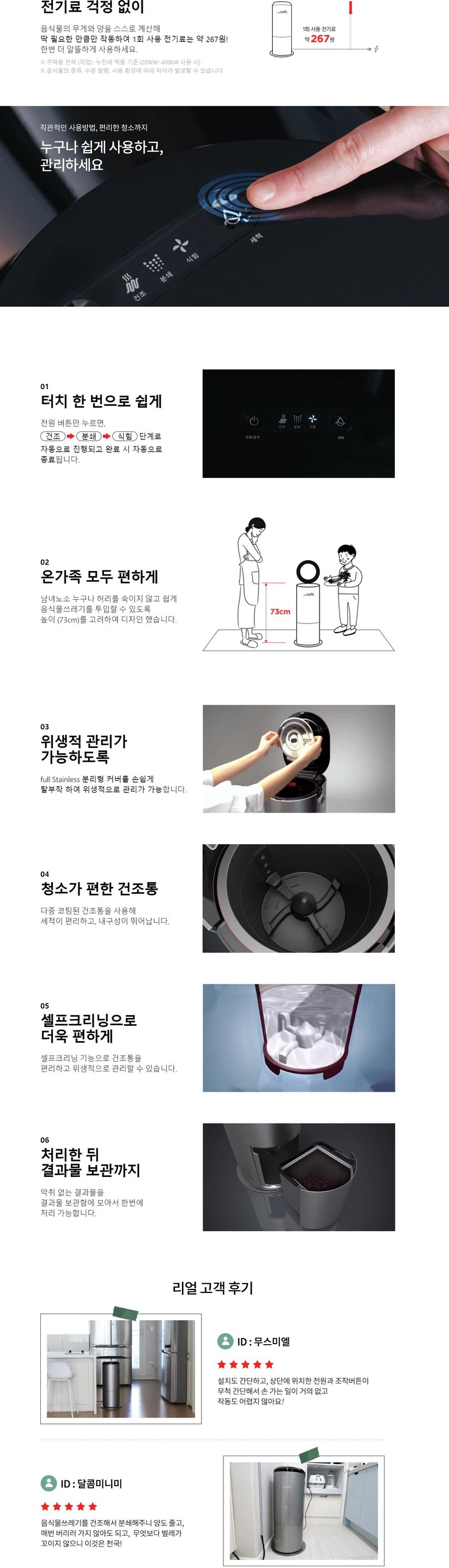 필수 표기정보 품명 및 모델명 황금맷돌 음식물처리기 KC 인증 필 유무 YM07019-17001A 정격전압, 소비전력 상품 상세페이지 참조 에너지소비효율등급 상품 상세페이지 참조 출시년월 최근제조 제조자(수입자) (주)에스디알.TGGS…